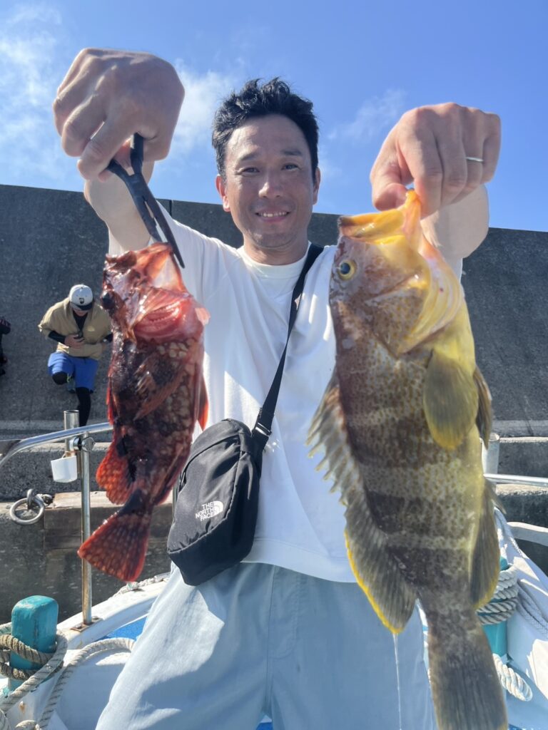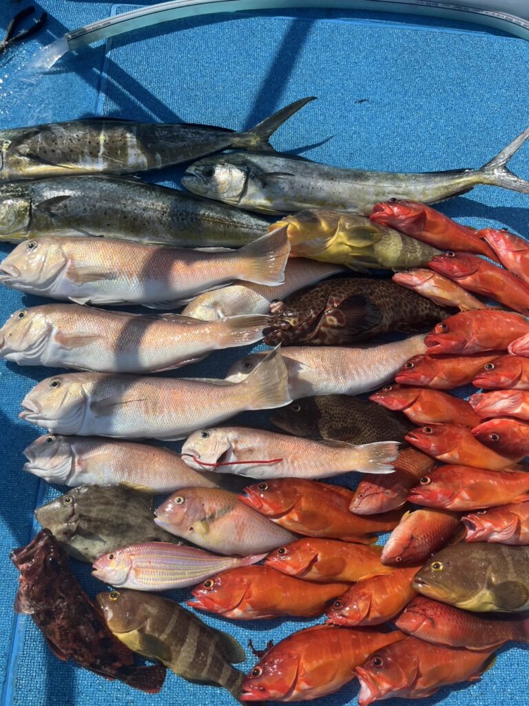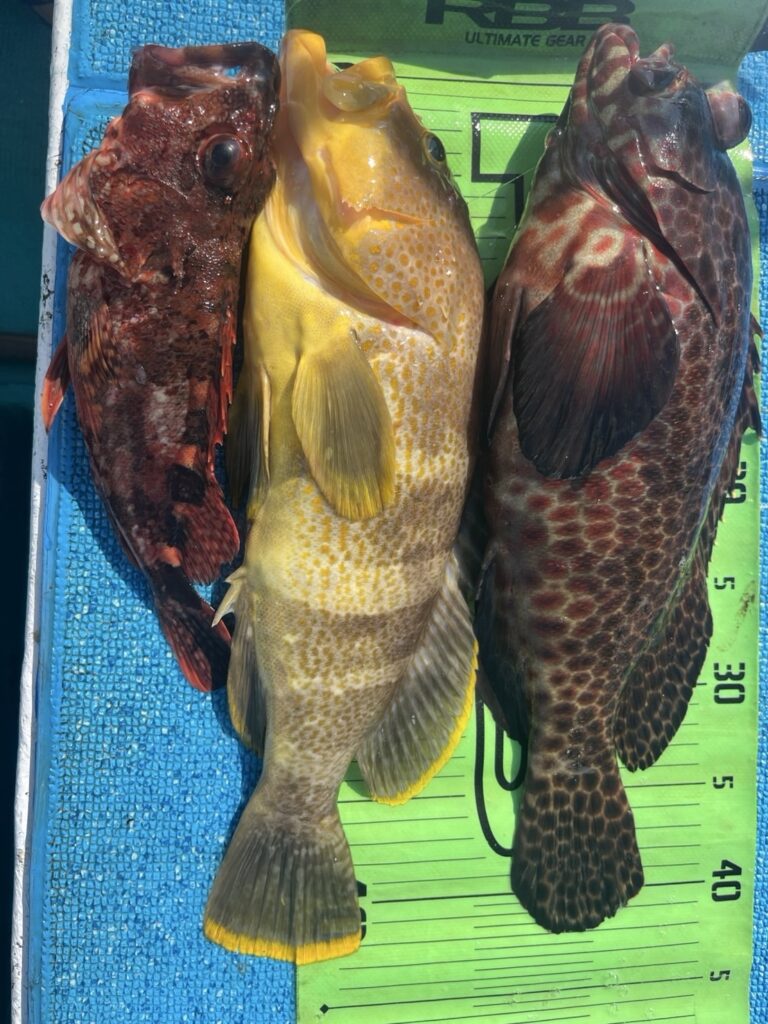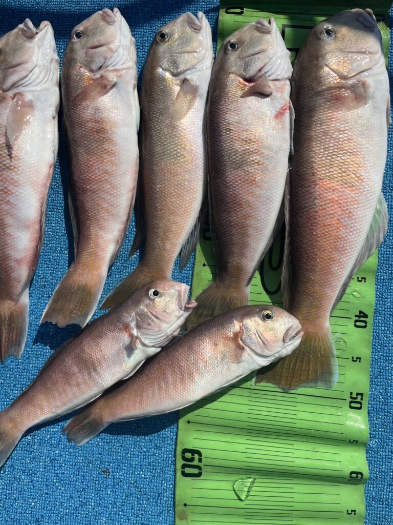 9月7日 甘ラバ.ひとつテンヤ.シイラゲーム 釣果情報 2025月09年24日釣果情報#うみ卯#印南#遊漁船御坊本日4名でチャーターでした。甘ラバ、シイラゲーム、一つテンヤでした。3名初甘鯛でしたが、50甘鯛含め、見事全員良型ゲットでした。シイラも多数ヒットしましたが、3匹ゲットでした。アカハタも良型がよく釣れました。