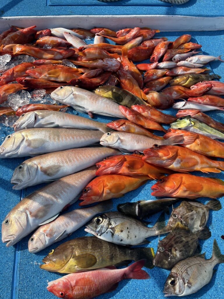 テンヤ釣りはアカハタは無限に釣れ大漁でやめました。