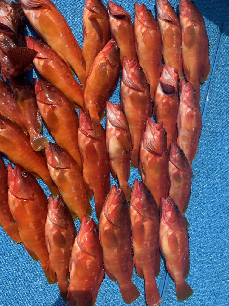 今日は4名でタイラバ、SLJオオモンハタ大、アカハタ大、爆釣。他ホウボウやメイチダイ、おじさんなど五目釣り。小さなハタ、リリース感謝です!