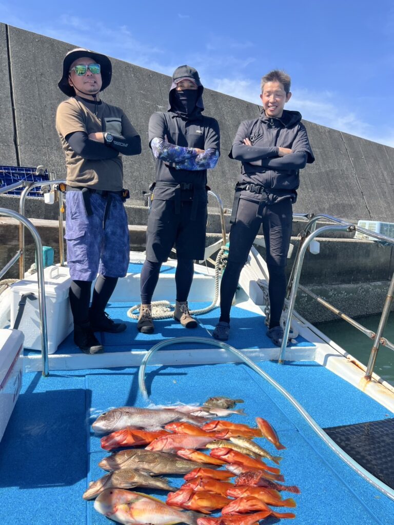 3名でSLJでした。オオモンハタ、赤ハタ、青ハタ、あやめカサゴ、ぼうぼう、白サバフグ、シマフグなど五目釣り出来ました。シマフグは毒がありますが、もと板前なんでちゃんと料理しました。美味しいですよ。