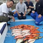 本日3名でタイラバ、SLJでした。アカハタ、イサキ、メイチ鯛など五目釣りでした。暑い中、お疲れ様でした。赤ハタの大量リリース感謝です。