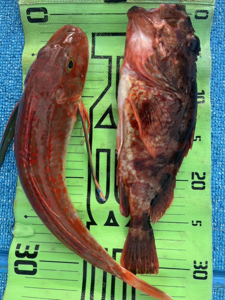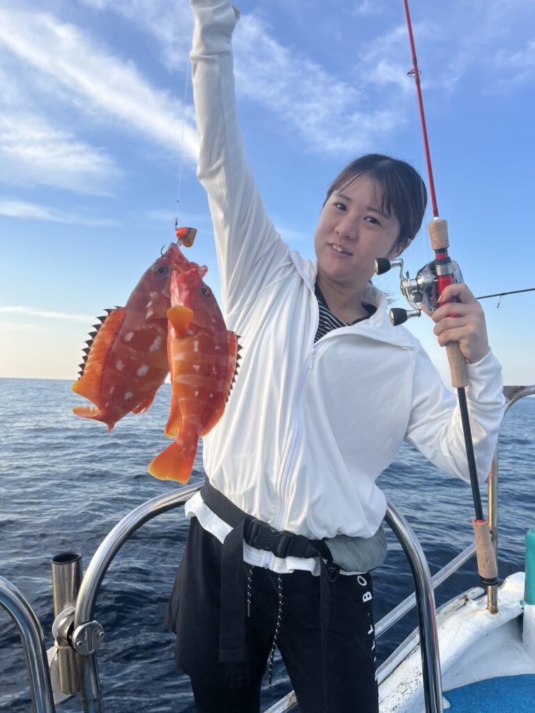 今日は2名でディープタイラバ、ジギング、ひとつテンヤで五目釣りでした。良型アカハタゲットです。