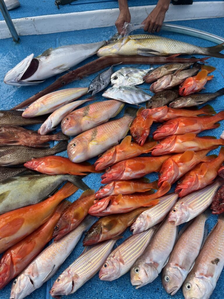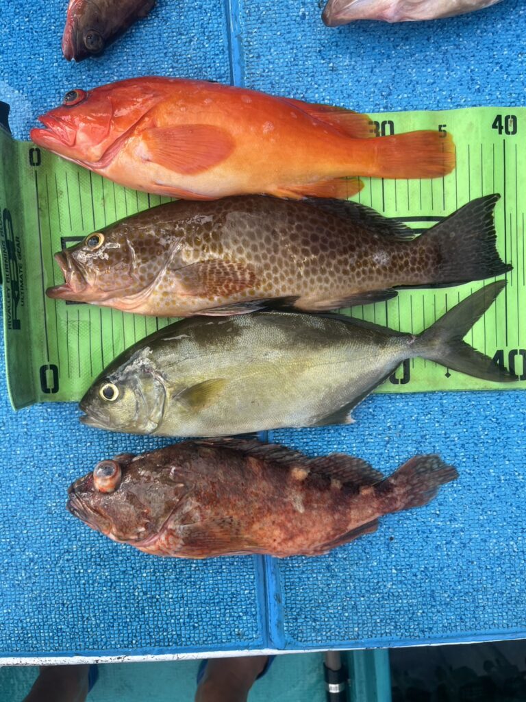 10月15日 甘ラバ.SLJ 釣果情報 2025月10年25日釣果情報#うみ卯#五目釣り#印南#遊漁船SLJ御坊本日4名でチャーターでした。甘ラバ、SLJでした。60オーバーのタマンはナイスゲットでした。オオモンハタ、シオ、メジロ、ウッカリカサゴ、アカハタ、白アマ、イトヨリ、赤ヤガラ、イラ、糸引きアジ、やいとカツオ、など五目釣りでした。
