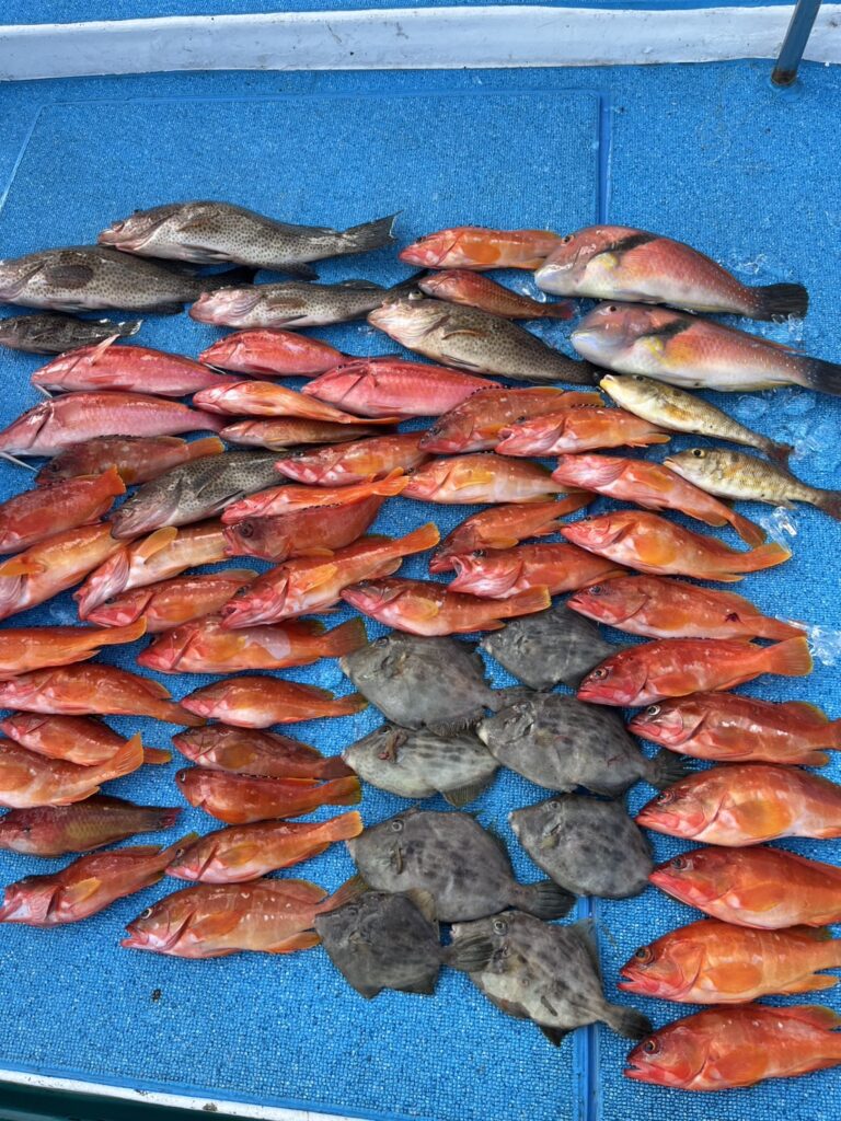 本日3名でタイラバ.SLJ餌釣りでした。アカハタ中心にメイチ鯛やシオなど釣れました♪暑い中お疲れ様でした。良型のアカハタなど、びっくり!太っ腹リリース感謝です。