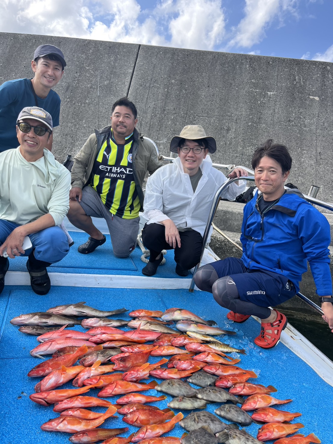 本日4名で、タイラバ、SLJ.甘ラバでした。50オオモンハタ含め大漁。白甘鯛も50ナイスゲット、アカハタ、メイチ鯛など美味しい魚の五目釣り出来ました。