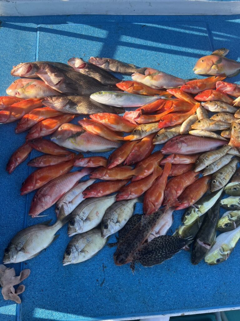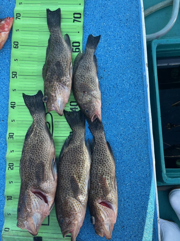 ファミリーフィッシングでした。初甘ラバも全員ゲットで、ひとつテンヤも良型メイチ鯛やアカハタで五目釣り出来ました。