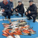 本日5名でチャーターでした。SLJ.タイラバでした。強風で状況悪い中、上手く五目釣りしてくれました。お客様、本日泊まりで食べれる分だけ釣って早上がりでした。