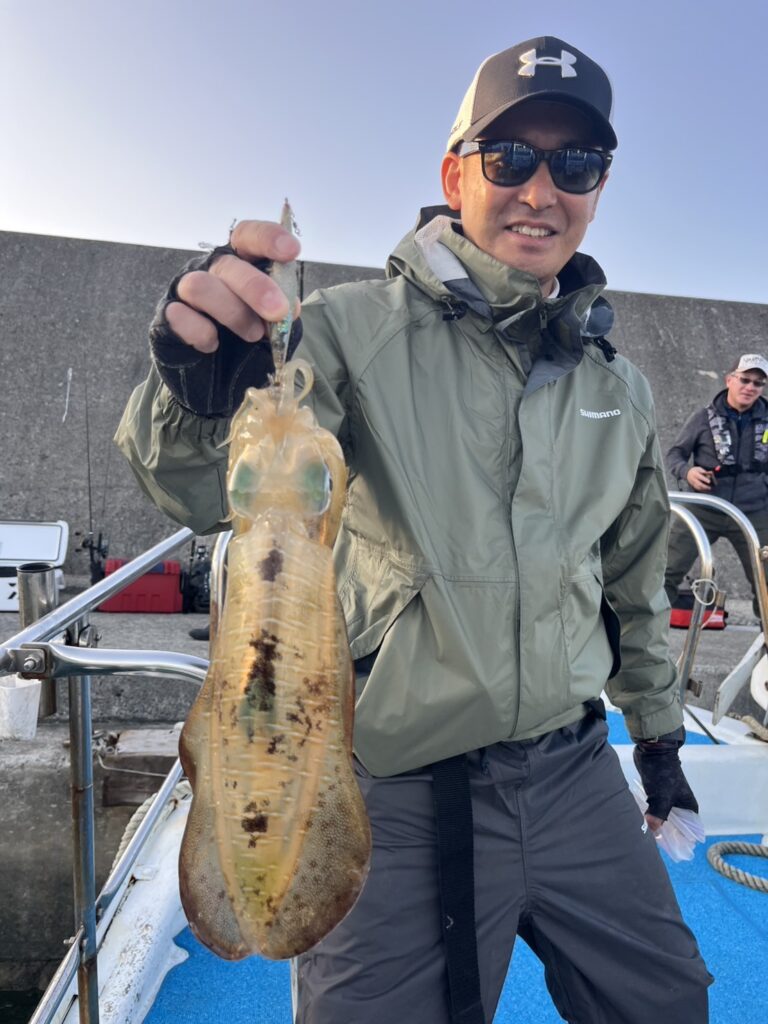 3名でSLJでした。風が強く、浅場、流しの釣りになってしまいましたが、よく釣れました。エソに紋甲イカ🦑抱いてきました。