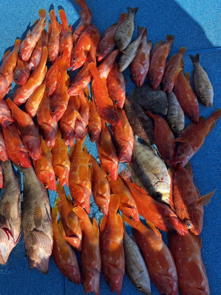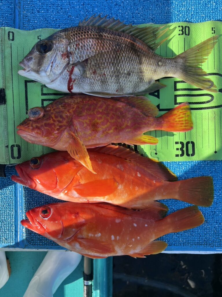 本日2名親子でチャーターでした。お父さんは初めてのひとつテンヤでアカハタ大漁でした。小さなアカハタ大量リリース感謝。