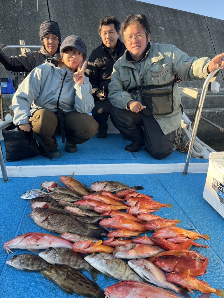 本日4名でひとつテンヤでした。初めての方も含め大漁でした!尺がしらもゲット。水温も上がり少し、海もよくなってきたと思います。