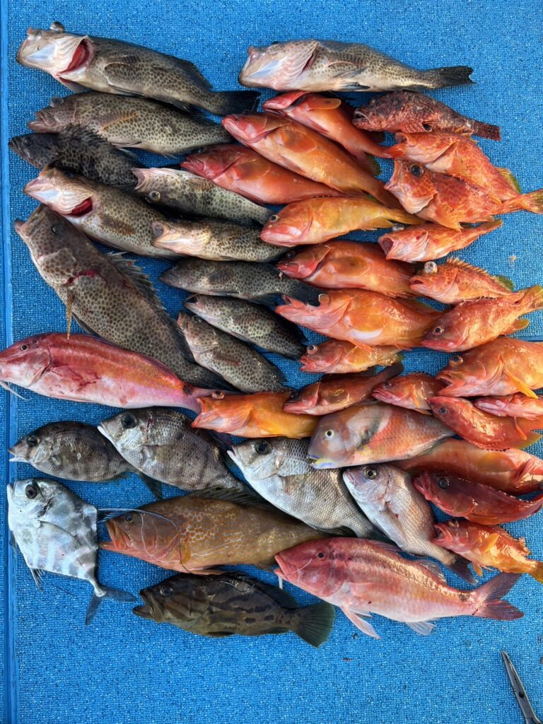 本日3名でファミリーフィッシング。アカハタ大量で五目釣りでした。