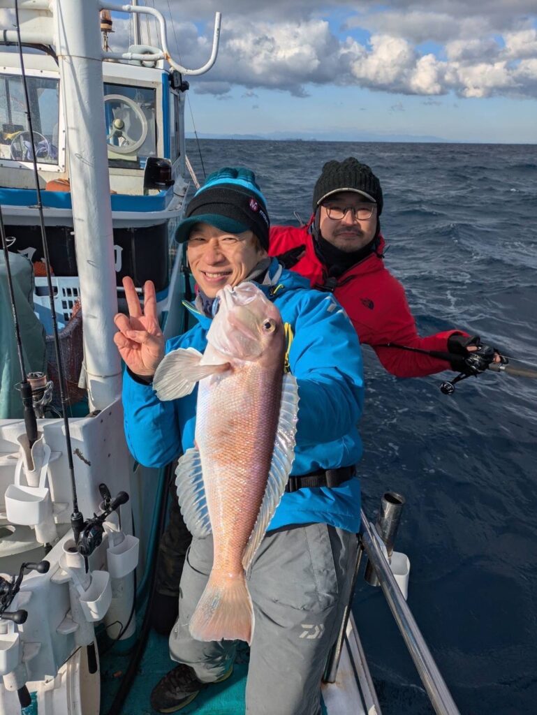 本日2名でチャーターでした。親子で来てくれて、テンヤ釣りでした。ですが、風が強く少し釣りずらかったですね。