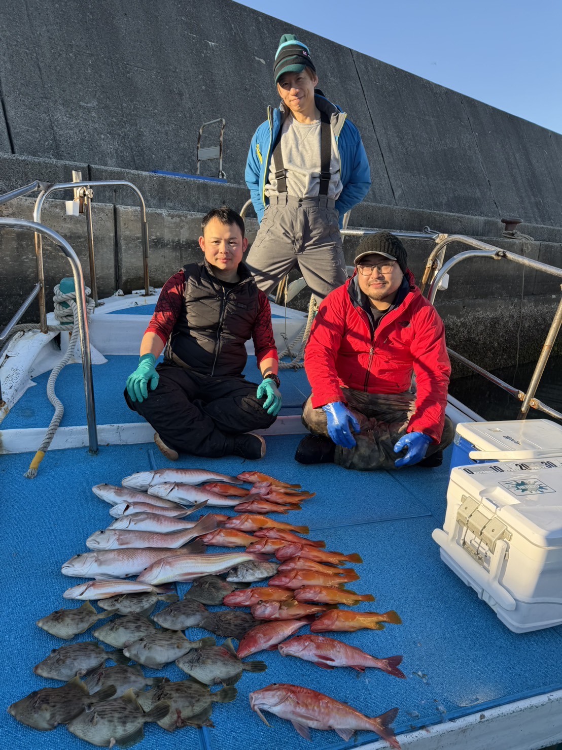 本日3名でチャーターでしたが、船酔いで1人ダウンでした。親子でタイラバ、50オオモンハタ、真鯛、アカハタ、アカヤガラ、あやめカサゴなど五目釣りでした。