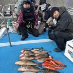 本日3名で全員初めてのタイラバ、一つテンヤでした。強風で状況の悪い中でしたが、色々五目釣りしてくれました。良型タマンナイスゲットでした。
