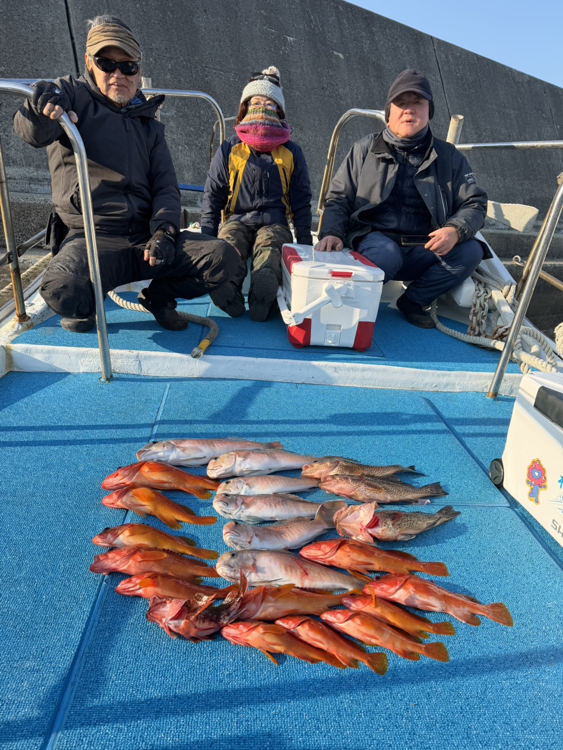 2月2日 SLJ.アマラバ.ひとつテンヤ 釣果情報 2026月02年19日釣果情報#うみ卯#印南#遊漁船SLJ御坊本日3名でSLJ.甘ラバ、一つテンヤでした。朝は強風と高波で、オオモンハタは難しかったです。白甘鯛、アカハタはぼちぼち釣れました。