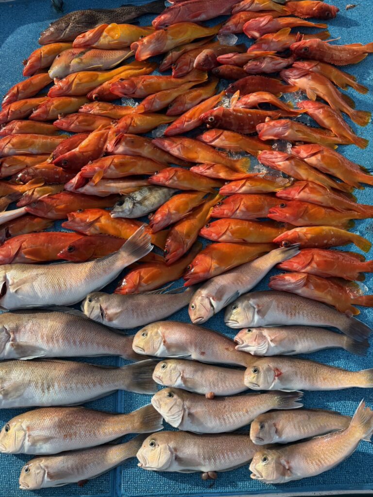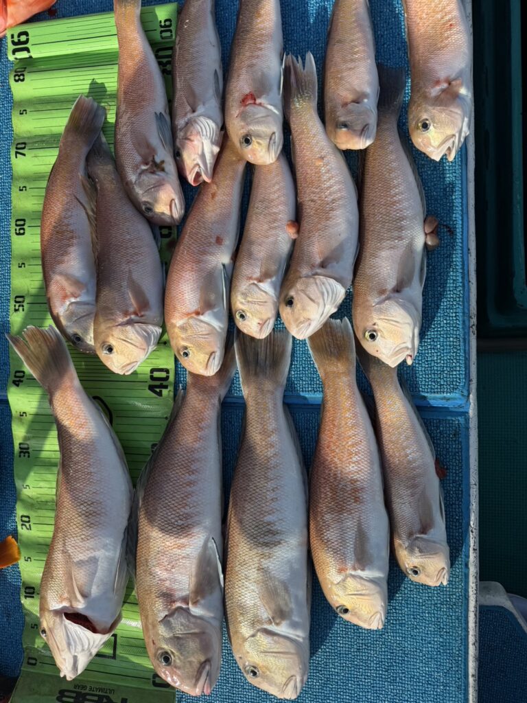 2月5日 天秤釣り.ひとつテンヤ 釣果情報 2026月02年19日釣果情報#うみ卯#印南#遊漁船御坊本日4名で白甘鯛の天秤釣り、ひとつテンヤのリレー便でした。良型の白甘鯛やアカハタが大漁でした。ゲストにオオモンハタ、おじさん、カワハギ、ガシラ、イトヨリ、メイチ鯛など釣れました。