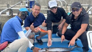 釣果情報9月3日 SLJ 4名でSLJでした。食い渋いなか、80の大鯛ナイスゲット。メーターオーバーの沖サワラもSLJでよくあげました。お土産にアカハタ、赤ヤガラ、マトウ鯛もつれました。 2025月09年23日釣果情報