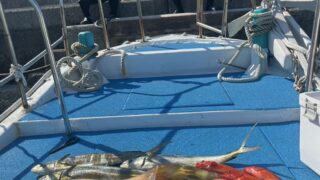 釣果情報8月29日 タイラバ.甘ラバ.SLJ.ひとつテンヤ 本日3名でチャーターでした。タイラバ、SLJ.甘ラバ、一つテンヤでした。初めての白甘鯛ナイスゲットでした。オオモンハタ、ワニゴチ、真鯛など、五目釣りでした。 2025月09年11日釣果情報