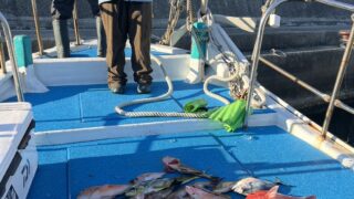釣果情報11月20日 SLJ 本日2名でチャーター。SLJでオオモンハタ狙いで出船でした。見事に50オオモンハタ筆頭に良型沢山ゲットでした。ゲストに、ヨコスジフエダイ、おじさん、真鯛、イラ、糸引きアジ、など釣れました。 2025月12年19日釣果情報