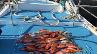 釣果情報12月29日 たいらば.ひとつテンヤ.ティップラン 本日4名でタイラバ.ひとつテンヤ、ティップランでした。沖では風無し潮無しで厳しかったですが、浅場のアカハタは裏切ません。お一人様ティップランで見事にキロアップゲットしました。 2026月01年25日釣果情報